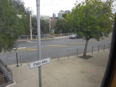 複数の大手IT企業が拠点を置くことで知られるパロアルト (Palo Alto) の駅。街自体の知名度とは裏腹に、この駅も他と大差ない簡素さです。